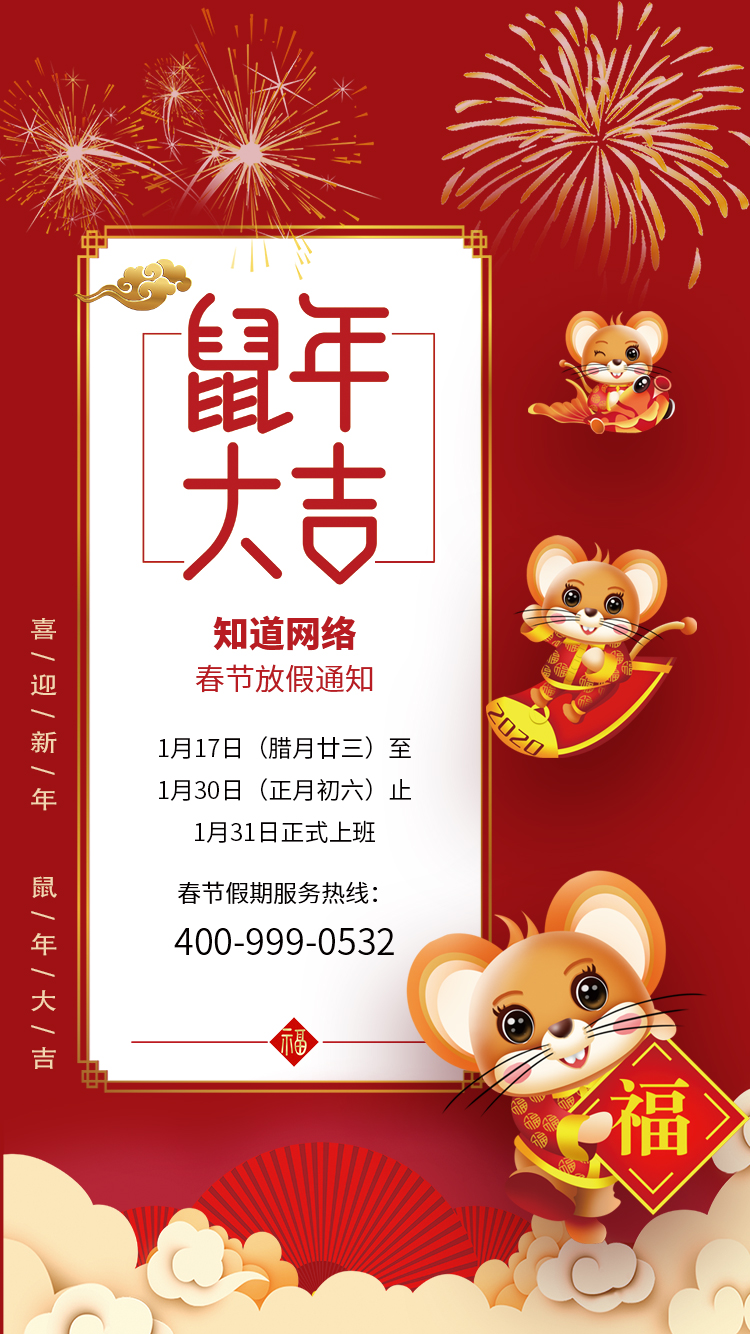 【知道網(wǎng)絡】2020年春節(jié)放假通知