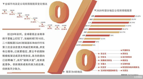 “支柱二”則是通過設立全球最低公司稅率來管控各國之間的財稅競爭。此前,七國集團成員國曾達成協議,支持把全球最低企業稅率設為15%。