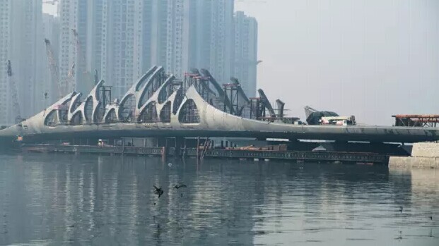據悉,連島一號橋位于青島西海岸新區靈山灣影視文化產業區內,是連接濱海大道和星光島的核心工程,該橋北接萬達茂,南聯大劇院,因其獨特的珊瑚貝造型在青島橋梁界獨樹一幟。橋梁長度290米,寬度為36米,雙向6車道,設計車速為40km/h,為景觀性橋梁。