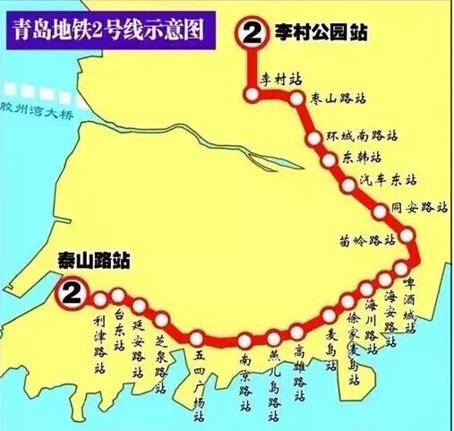 地鐵2號線計劃2017年底前實現(xiàn)東段通車,全線2018年通車。據(jù)了解,青島地鐵2號線一期工程線路全長25.2公里 ,均為地下線,途經(jīng)市北區(qū)、市南區(qū)、嶗山區(qū)、李滄區(qū)四個區(qū)。
