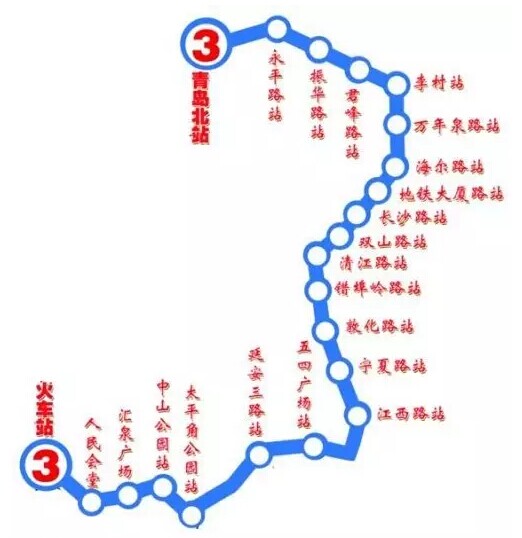 2015年12月16日北段通車運(yùn)營,南段也會在今年開通。線路全長25.2公里,設(shè)車站22座。起點青島北站到終點火車站。