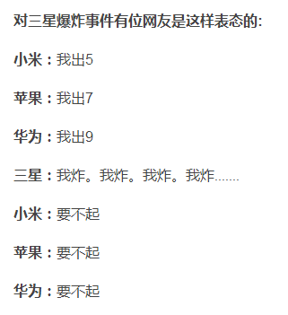今天,三星在中國連續爆炸,無論什么原因,都應該出狠手徹查。三星對中國與歐美的區別對待,韓國媒體對中國企業的輕蔑詆毀,韓國部署薩德的一意孤行,這都是時候付出代價了。