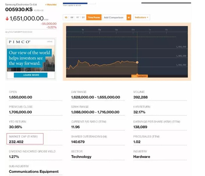 受運營商停售和三星停止生產Note 7不利消息的雙重打擊,三星電子股價在今日遭受重挫。