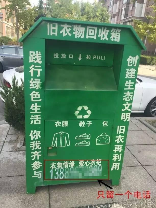 大連某小區內的回收箱上沒有募捐者名頭,只有一個電話號碼,居民稱之前上面有“愛心行動”和“符合捐贈條件的衣物用于慈善捐助”等字樣被涂抹掉。↓↓↓