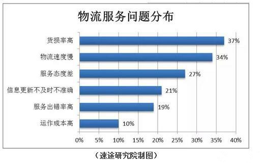 在快遞行業迅速發展的同時,也催生了很多問題,例如快遞貨物運行的速度太慢,服務態度差,貨物丟失等問題,根據物流的調查顯示,人們反應最多的是貨損率較高,占比37%,雖然從包裝到運輸已經極力避免貨物的損壞,但由于物流服務人員以及交通運輸等各方面原因,貨物損壞仍會出現,而且用戶心理出發,一次貨物受損就可能由此引發對物流品牌的關注。