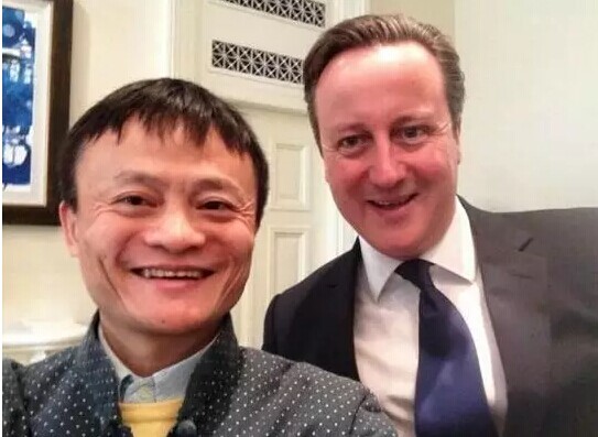 2013年,馬云和英國首相卡梅倫約會后,卡梅倫在推特上分享了兩個好基友的自拍照。卡梅倫與馬云共同見證了英國投資貿易總署與阿里簽署合作備忘錄。