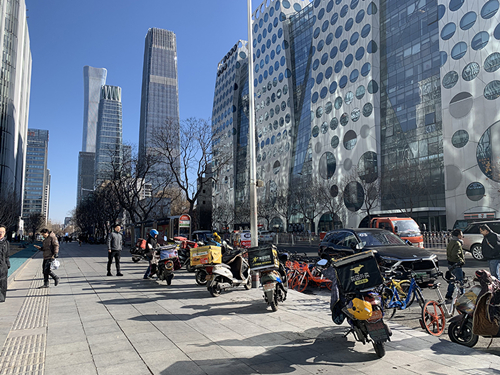 據統計,全國外賣平臺每天能夠產生2000萬左右的訂單,這些外賣大多產生在商業區與住宅區,通過對光華路soho2期前經過的騎手進行觀察,1月14日下午2:30到3:00,在送餐非高峰期的半個小時內,有128個騎手經過,平均每分鐘就有超過4個騎手從這里經過,其中美團外賣與餓了么的騎手占90%。