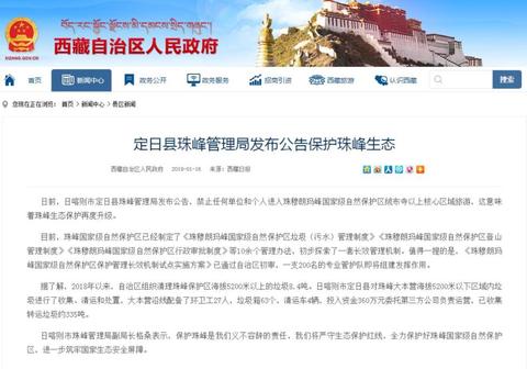 定日縣珠峰管理局發布公告保護珠峰生態 (via xizang.gov.cn)
