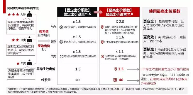 2、電話出價系數由固定值升級為最高出價系數,請上調系數以避免錯失