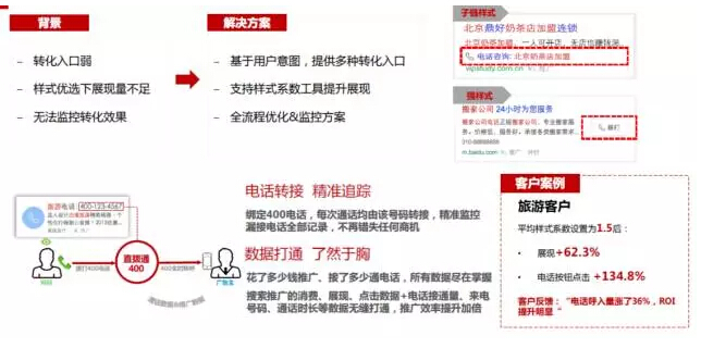 3、面向依靠電話為轉化手段的客戶,有效提升電話獲取量