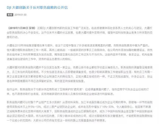 不僅僅是對公司內部,職務腐敗還會對整個產業鏈產生多大影響?大疆在一封公開信中表示,從原材料采購、加工半成品到最后成為企業可用的零件,即使每一環節的腐敗使得采購成本只上升5%-10%,經過三層產業鏈到達企業時,成本在無形中增加了16%-33%,令人觸目驚心。