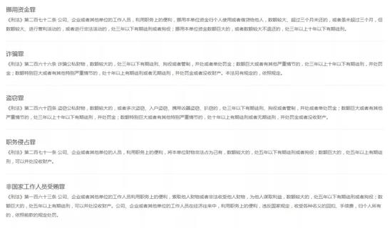 除了被公司辭退,在法律層面腐敗犯罪究竟會面對怎樣的刑罰?北京師范大學中國刑法研究所副所長彭新林此前表示,在2014年到2017年,民營企業腐敗犯罪中,共包括15個罪名,其中最主要的就是單位行賄罪、職務侵占罪、挪用資金罪、非國家工作人員受賄罪和行賄罪。